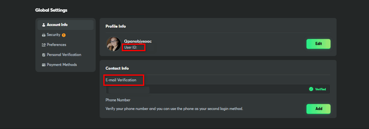 - Email address. The email linked to your account at registration remains permanently associated. It’s essential for account recovery and security alerts.