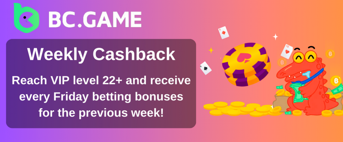 - BC.Game’s Weekly Bonus is a prize meant for VIP members who have advanced to level 22 or above.